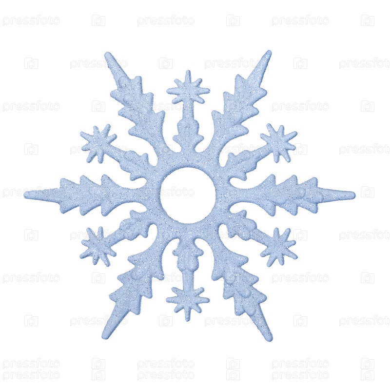 Декоративная синяя снежинка с блестками на белом фоне. рождественские украшения
