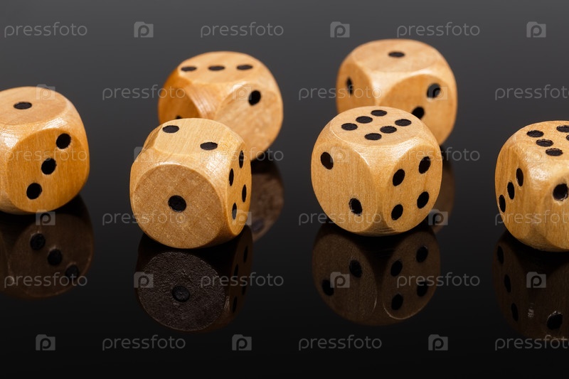 Деревянные кости на темном фоне крупным планом с отражением