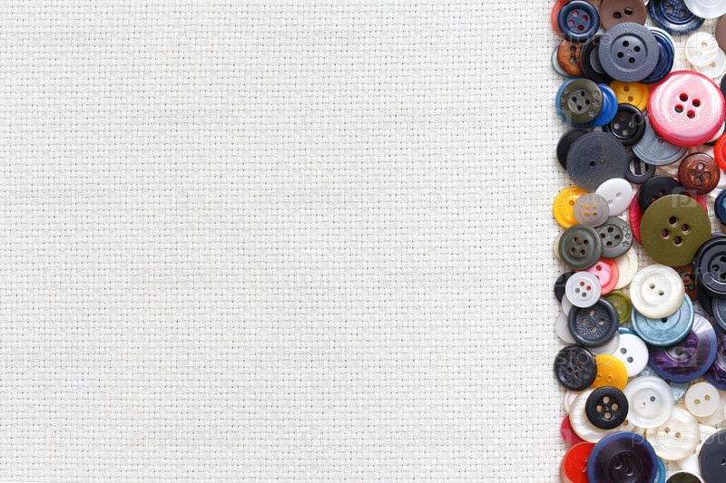 Разноцветные пуговицы на белом тканом фоне в виде рамки