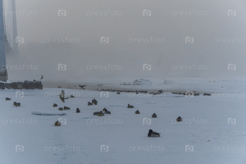 В парке на берегу Енисея в центре Красноярска в сильный мороз