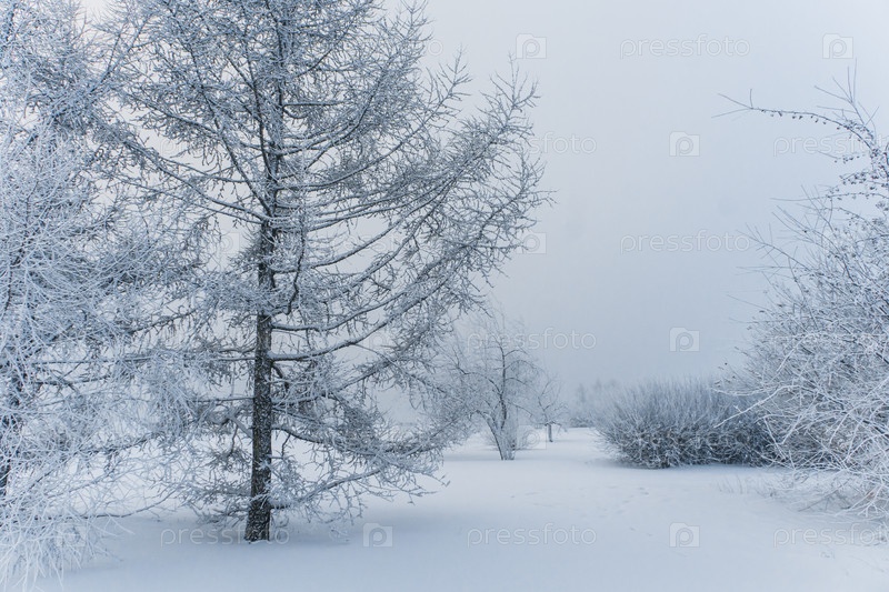 В парке на берегу Енисея в центре Красноярска в сильный мороз