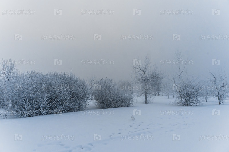 В парке на берегу Енисея в центре Красноярска в сильный мороз