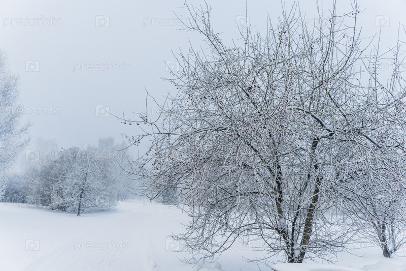В парке на берегу Енисея в центре Красноярска в сильный мороз