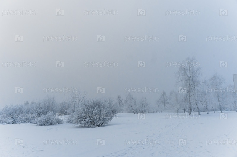 В парке на берегу Енисея в центре Красноярска в сильный мороз