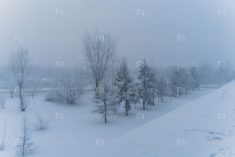 В парке на берегу Енисея в центре Красноярска в сильный мороз