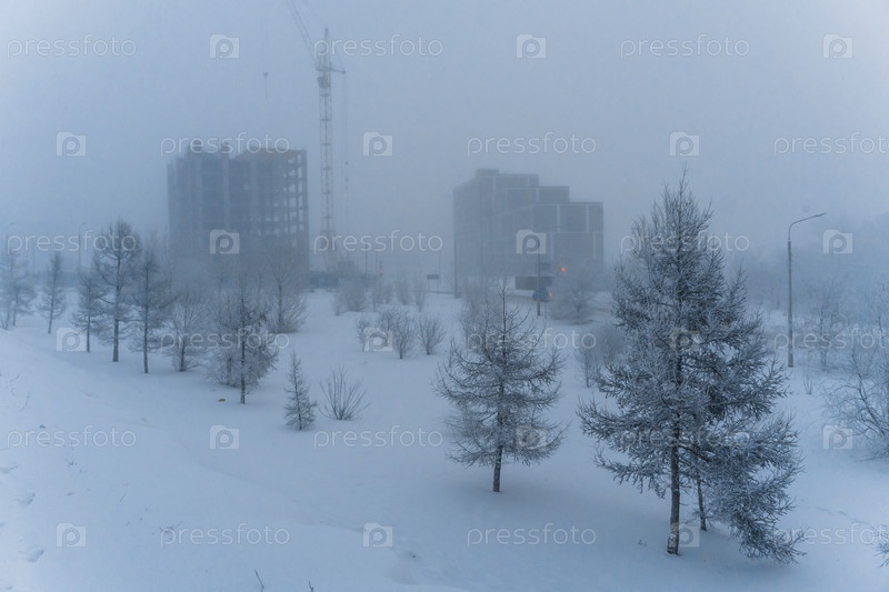 В парке на берегу Енисея в центре Красноярска в сильный мороз