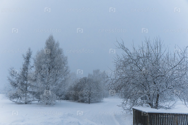 В парке на берегу Енисея в центре Красноярска в сильный мороз