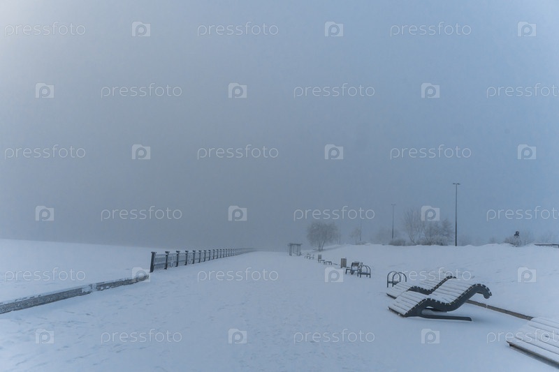 В парке на берегу Енисея в центре Красноярска в сильный мороз