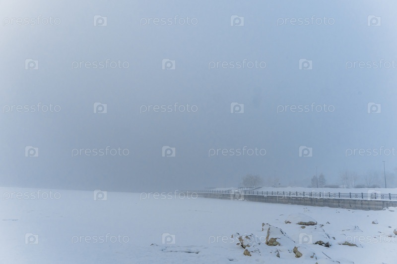 В парке на берегу Енисея в центре Красноярска в сильный мороз