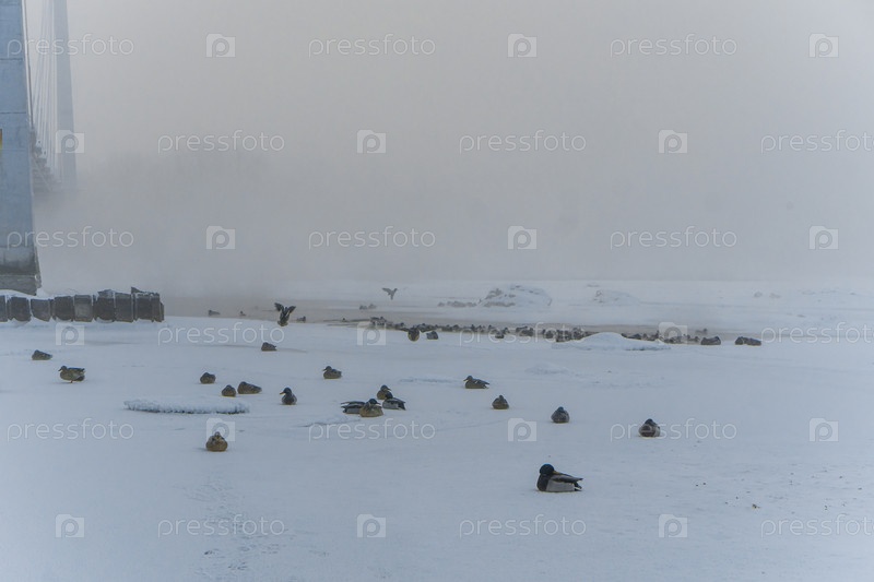 В парке на берегу Енисея в центре Красноярска в сильный мороз