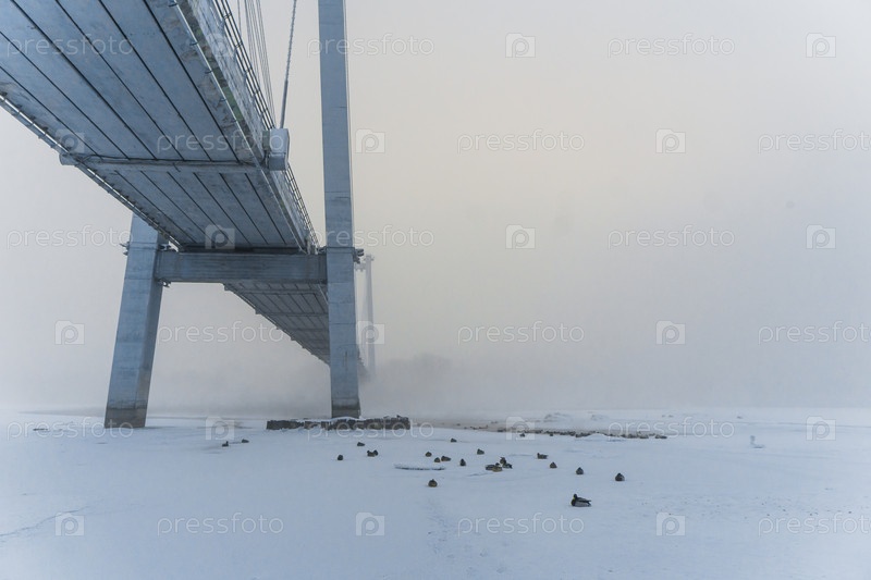 В парке на берегу Енисея в центре Красноярска в сильный мороз