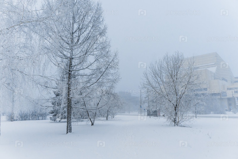 В парке на берегу Енисея в центре Красноярска в сильный мороз