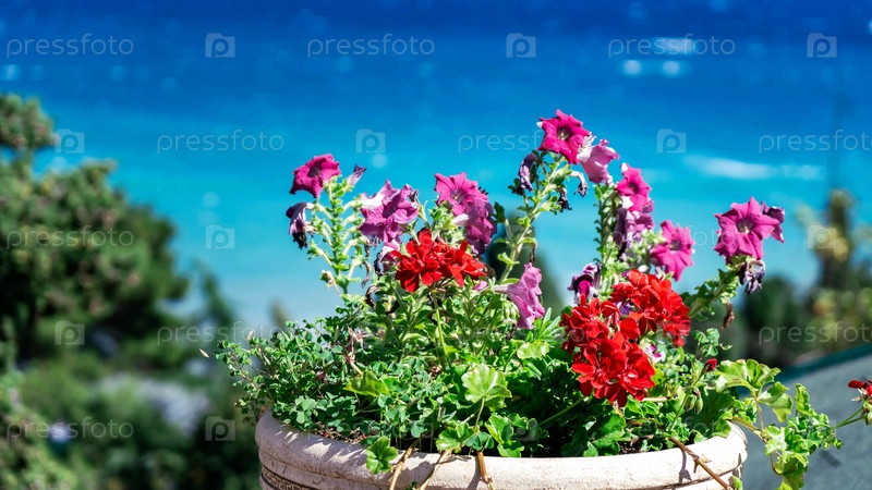 Ярко-красные цветы в горшке