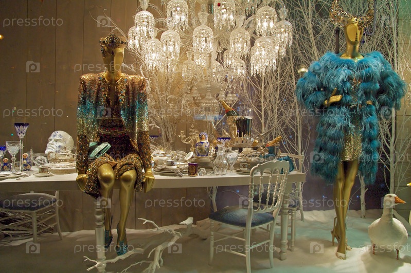 Украшения в парижском универмаге Printemps ('Весна'). два манекена и гусь
