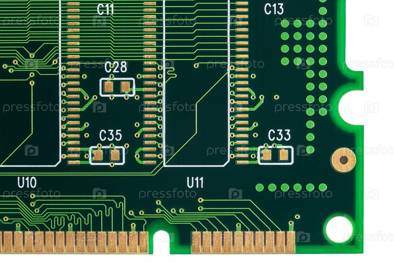 Печатная плата модуля памяти для компьютера, без компонентов, крупный план