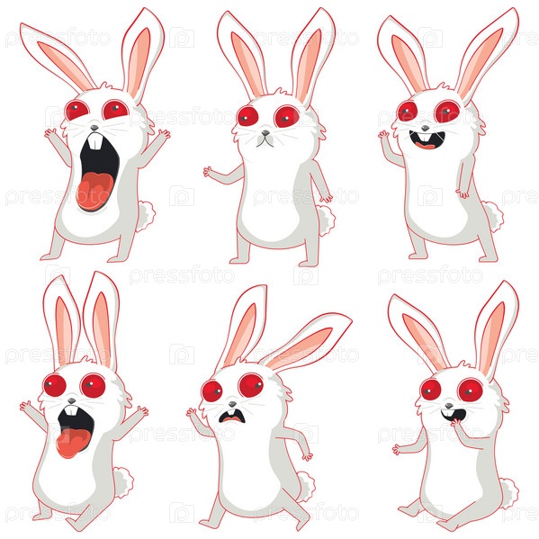 Сумасшедший белый кролик в разных позах