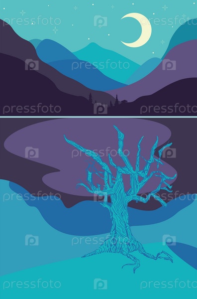 Ночное озеро в горах и дерево