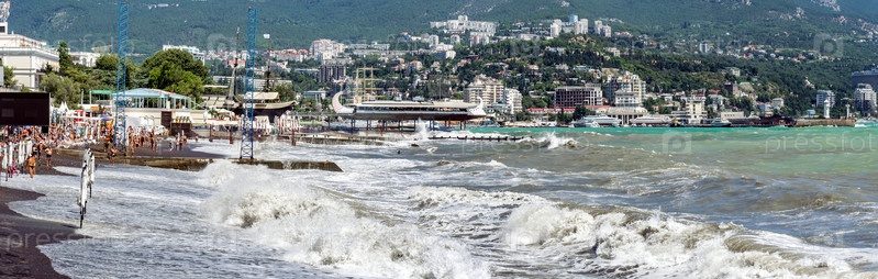 Набережная Ялты на длинной выдержке на фоне гор