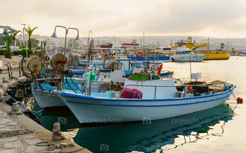 Лодки рыбаков в порту на рассвете