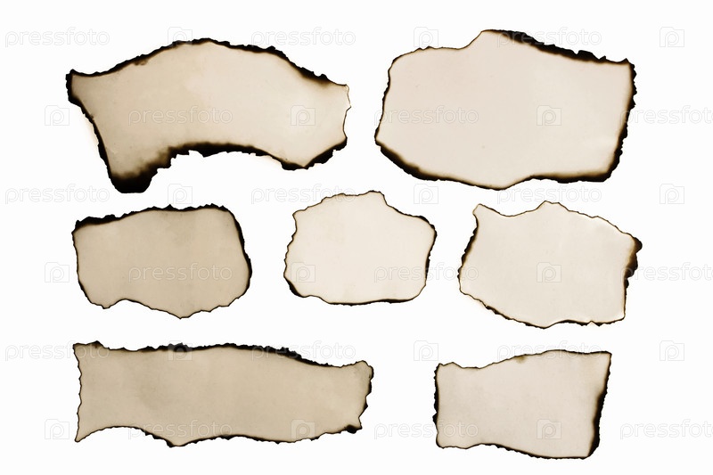 Коллекция сожженных бумаг, изолированные на белом фоне. Баннер. Копировать пространство