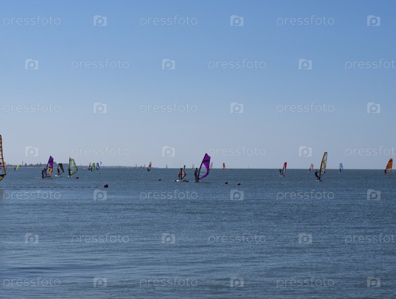 Многие виндсерферы в морской бухте отправляются в плавание для развлечения. Занятия на улице