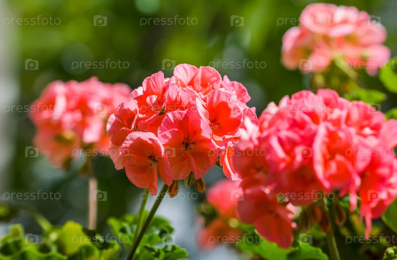 Цветы герани в летнем саду
