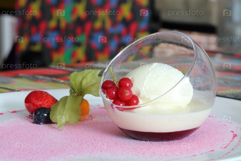 Панна-котта с клубникой, черникой и мятой на белом фоне