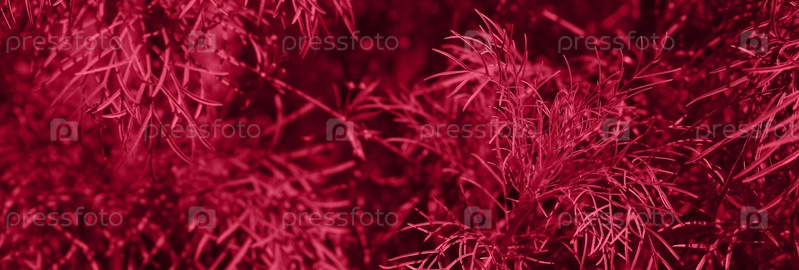 Красивая тонированная вива фиолетовый цветочный фон. Текст красного листья. Баннер. Модный цвет 2023 года Viva Magenta