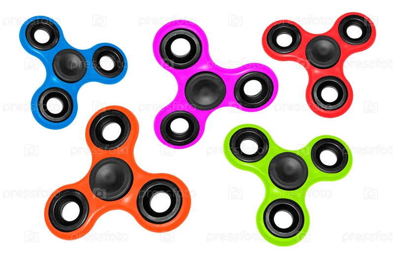 Набор разноцветных спиннеров, изолированных на белом фоне.Игрушка для снятия стресса