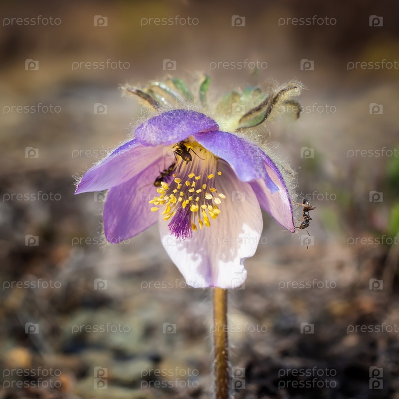 Муравьи на цветущем пасхальном цвете. макрофотография