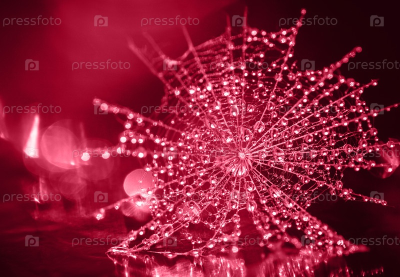 Viva Magenta тонизированные семена козла в каплях воды с крупным планом. цвет 2023 года Viva Magenta