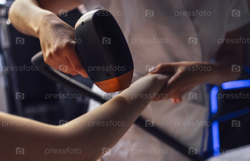 Молодая женщина получает фотоэпиляцию во время посещения салона красоты в салоне
