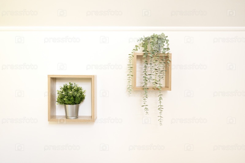 Декоративная композиция с зелеными растениями в белой деревянной раме