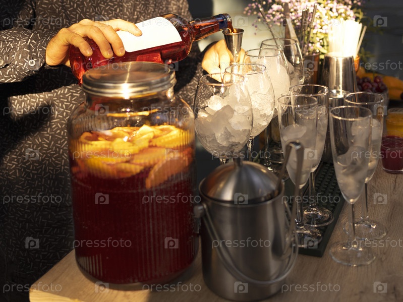 Бармен готовит коктейль aperol spritz в открытом летнем баре