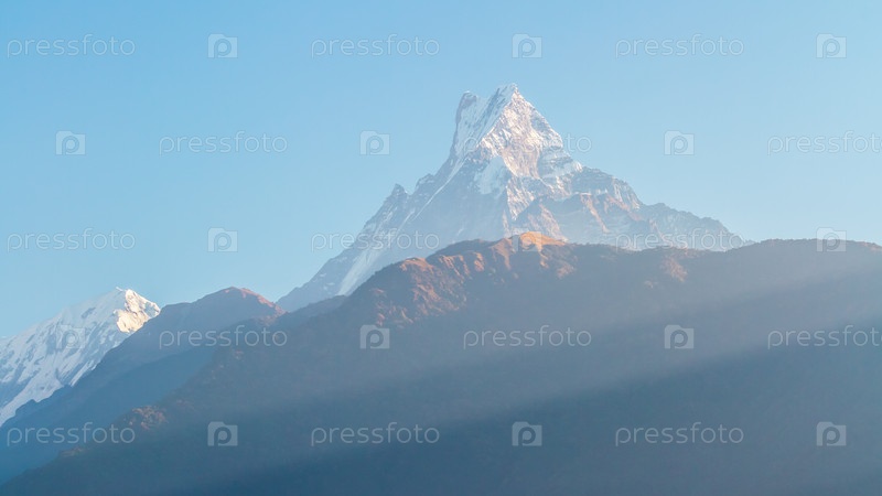 Вид на гору Мачапучаре из Непала, что означает гору Рыбий хвост, заповедник Аннапурна, Гималаи, Непал
