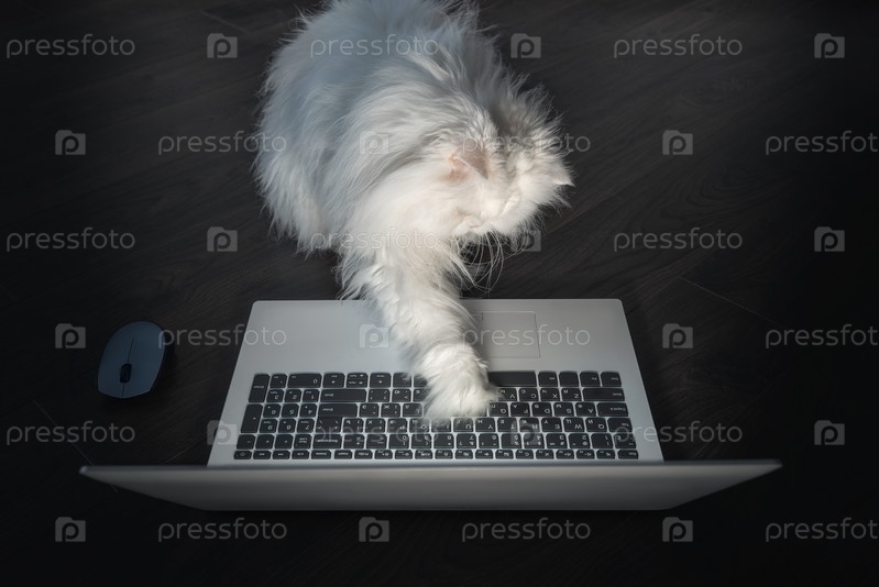 Интернет зависимый персидский кот за ноутбуком. Потребитель контента