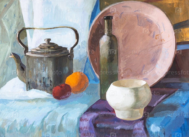 Ручная роспись натюрморта со старым чайником, чайником