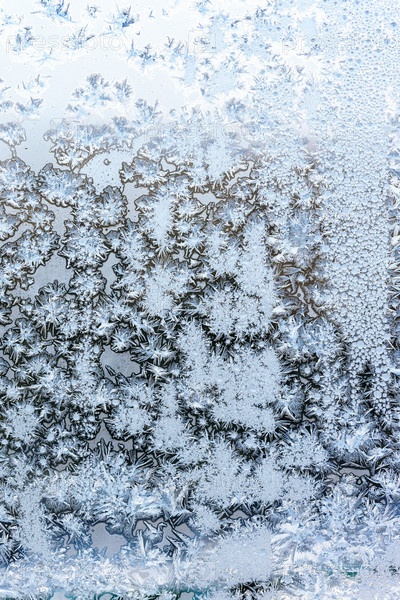 Синий иней на поверхности оконного стекла дома