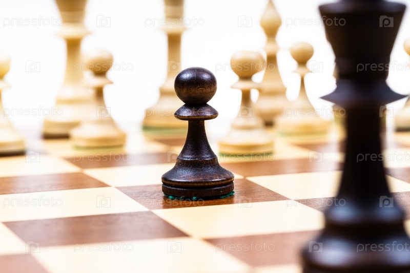 Атакующая черная пешка и ферзь против белых шахмат