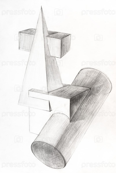 Рисованная композиция с геометрическими фигурами
