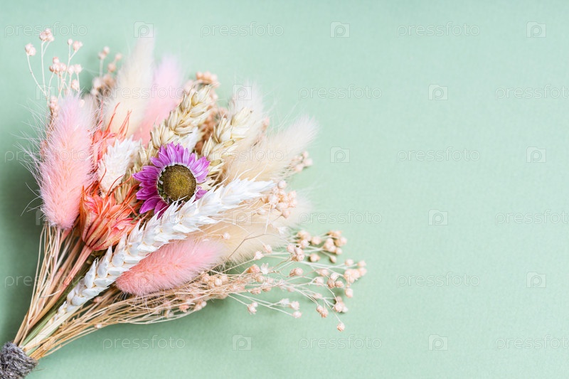 Букет из сухоцветов и колосков на зеленом
