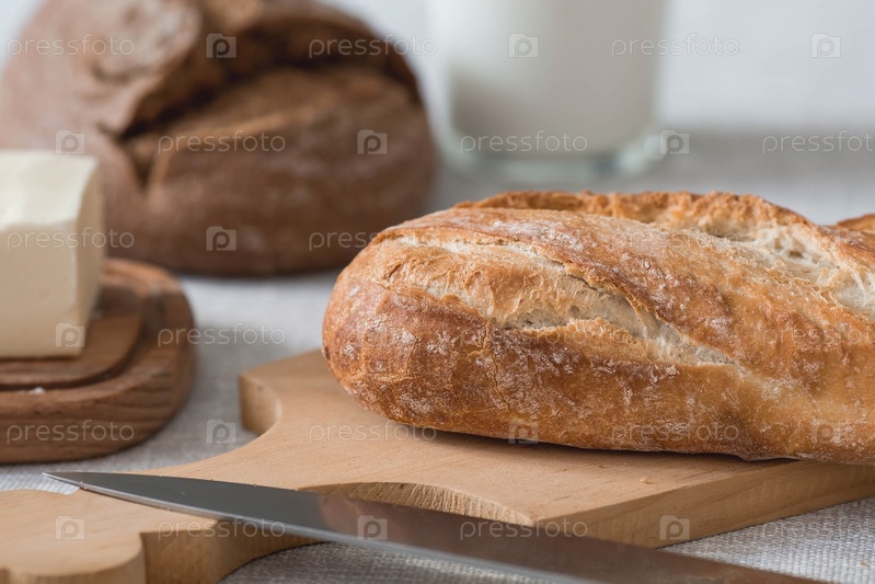 Ассортимент свежего хлеба в плетеной корзине крупным планом. Свежеиспеченный хлеб на столе. Контекст пекарни с вкусным хлебом. Кондитерские изделия