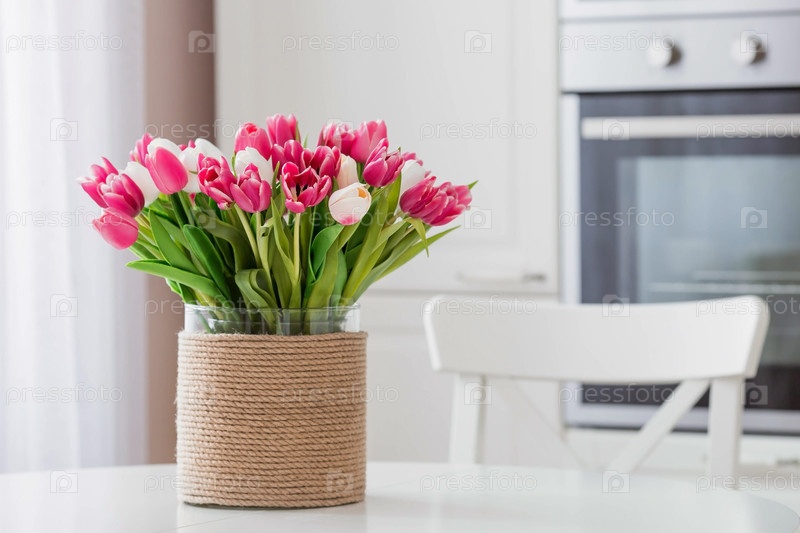Букет тюльпанов на белом столе