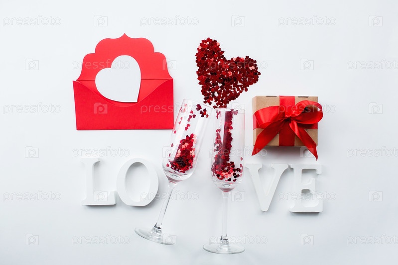 Очки конфетти в форме сердца на белом фоне. Плоская планировка, вид сверху. Концепция праздника и празднования