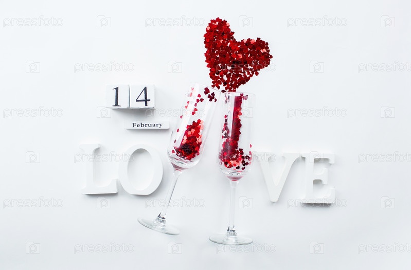 Очки конфетти в форме сердца на белом фоне. Плоская планировка, вид сверху. Концепция праздника и празднования