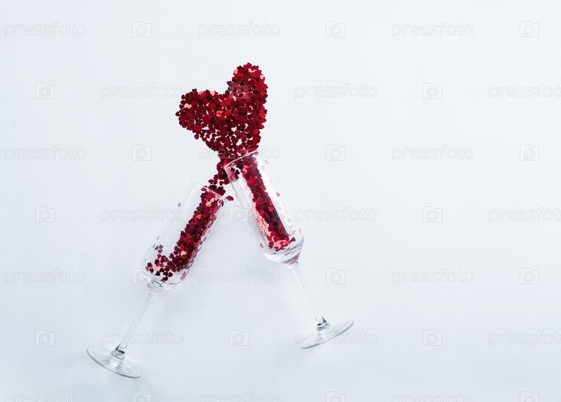 Очки конфетти в форме сердца на белом фоне. Плоская планировка, вид сверху. Концепция праздника и празднования
