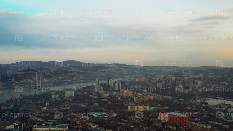 Панорама городского пейзажа с видом на закат