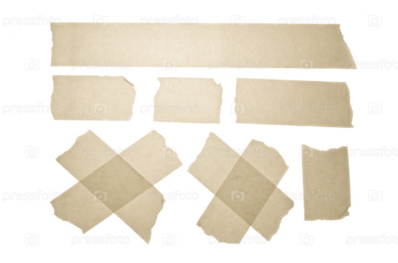 Коллекция желтой клейкой ленты в возрасте. Коллекция различных клейких лент. Скотч изолирован на белом фоне. Копировать пространство