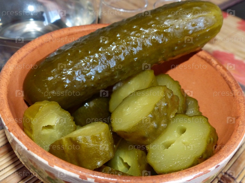 Соленые огурчики, отличная закуска под холодную водку. Крупный план. Натуральная и здоровая пища
