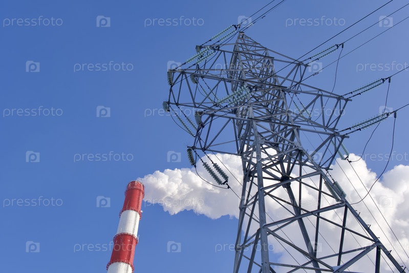 Сильные выбросы в светлую атмосферу из трубы городской ТЭЦ зимой